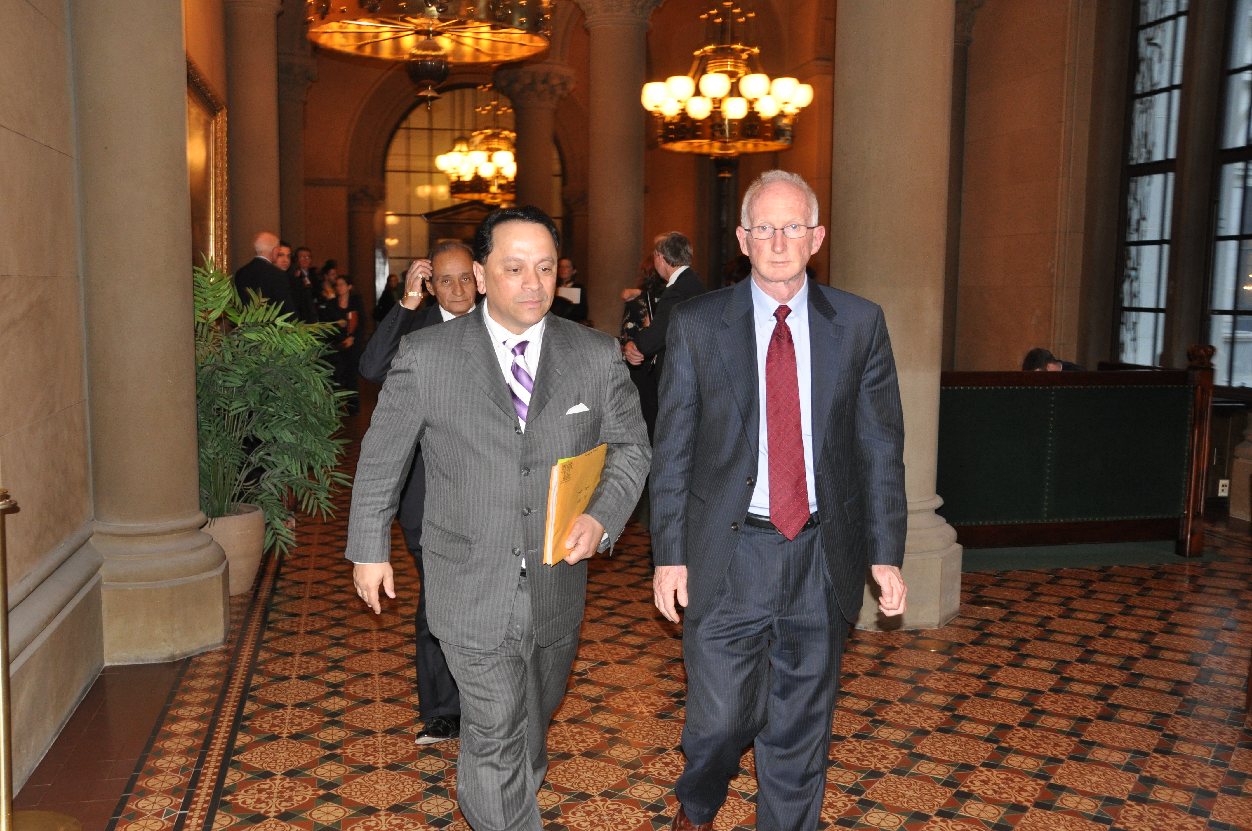 No sé si merece la pena acompañarle. El líder del la Mayoría Demócrata en el Senado, Pedro Espada Jr., me ha comentado poco antes que él cree que el destino de Monserrate quedará en manos de los votantes de primarias el próximo septiembre. Además, el comité no tiene el poder de expulsarle, sólo de recomendar su expulsión.