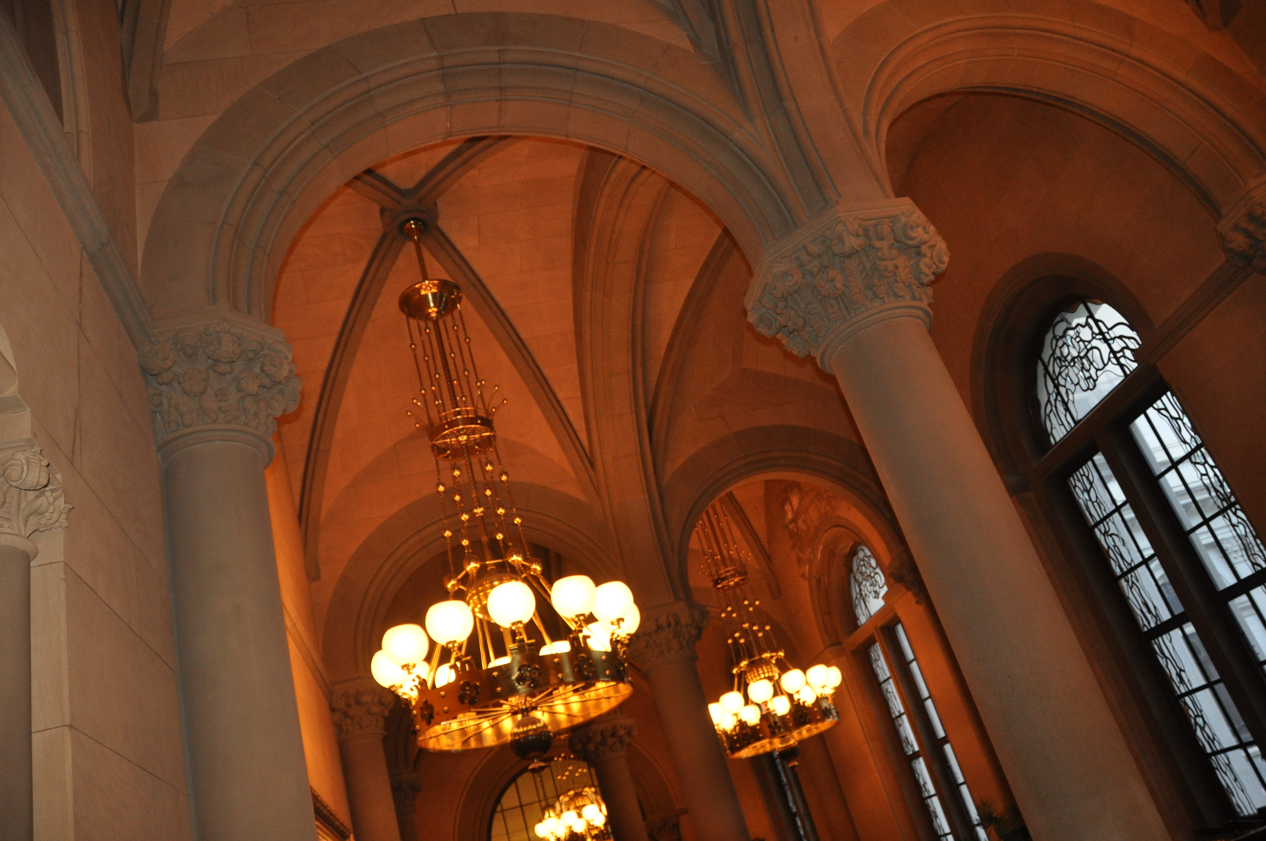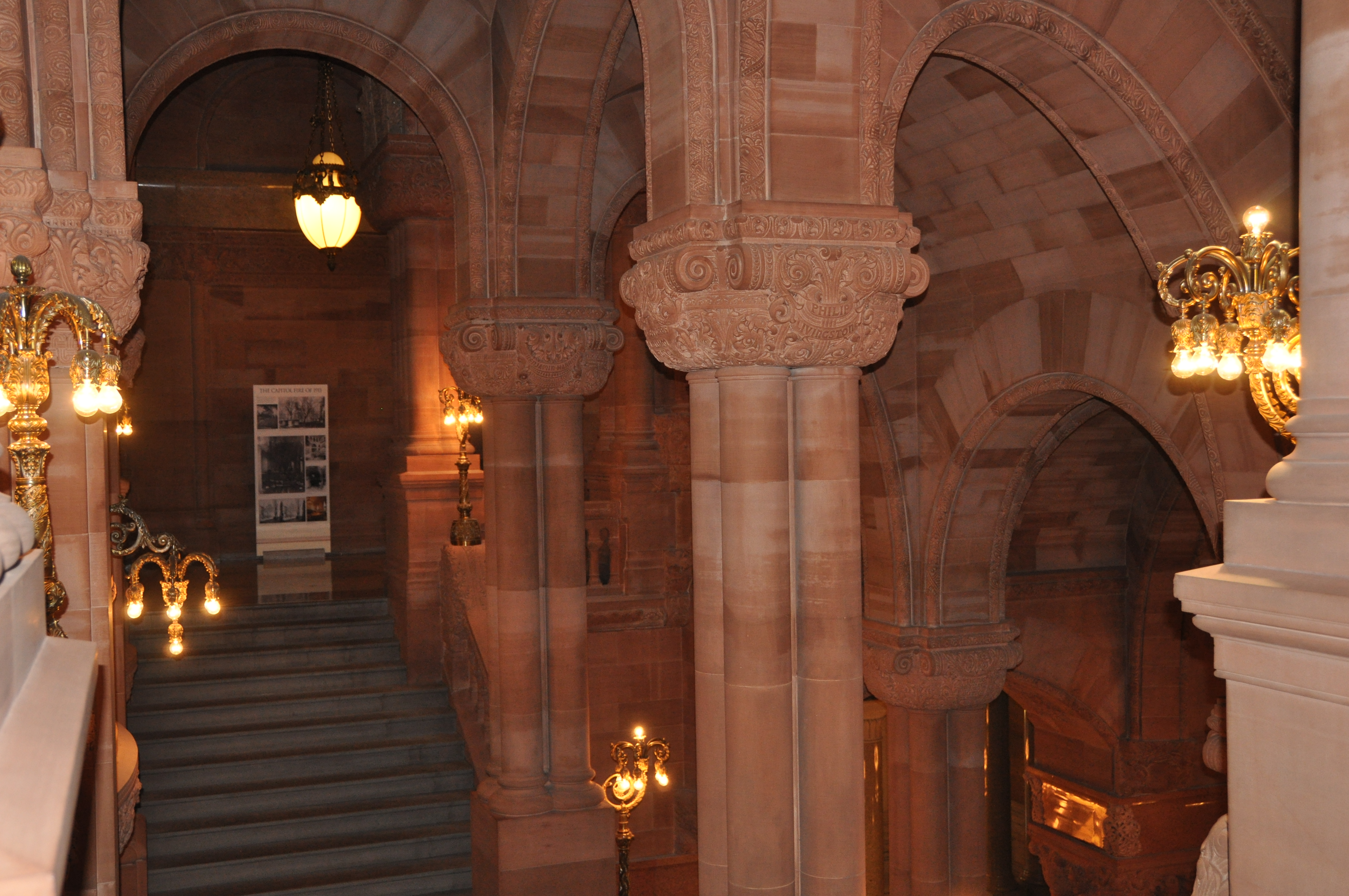 Camino desconcertado por los pasillos del Capitolio de Albany. Doy dos pasos, y la oscuridad de las bóvedas románicas se convierte en tenue luz que entra por los ventanales renacentistas. Y en frente, los arcos góticos, y adornos que yo siempre pensé eran típicos del arte mudéjar. Menudo lío.